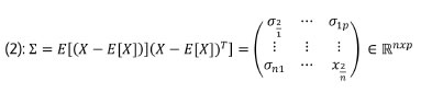 Se parte de p variables, muestreadas sobre n (unidades de análisis) casos: x11,…,xp1,…,x1n,… xpn. Su expresión matricial es: