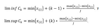 b) Agrupamos x = (x1, x2, ..., xn ) en un número J de clases, donde J = min {h*10,n}.
