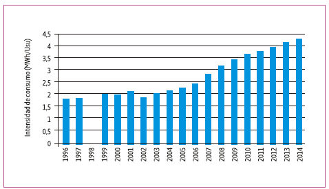 Figura 6. Variaciones en la intensidad del consumo eléctrico en el sector industrial. Período 1996-2014