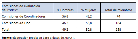 6 Listado de Integrantes de Comisiones de Coordinadores disponible en: https://www.argentina.gob.ar/ciencia/agencia/fondo-para-la-investigacion-cientifica-y-tecnologica-foncyt/coordinadores. Listado de integrantes de Comisiones Ad Hoc disponible en: http://www.agencia.mincyt.gob.ar/upload/CAH%20PICT%202017%20para%20web.pdf Acceso el 29/10/2018.